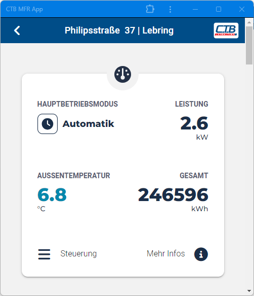 Nach der erfolgreichen Installation des MFR-Gateways ist die MFR-WebApp im Web-Browser mit dem URL https://mfr.dh.ctb.co.at erreichbar.